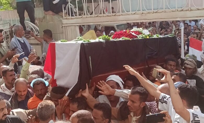 وجاءت جموع المشيعين منذ الصباح الباكر من مختلف مديريات ومناطق تعز ، حيث تدفقت الحشود بالآلاف إلى ساحة التشييع ، مرددين هتافات غاضبة تطالب بالقصاص العادل من القتلة، وإنهاء حالة الفوضى الأمنية التي تغذي مثل هذه الجرائم.