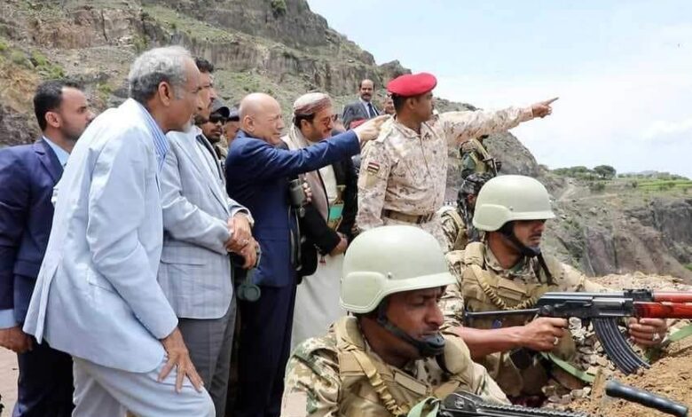 قام فخامة الرئيس الدكتور رشاد محمد العليمي، رئيس مجلس القيادة الرئاسي، القائد الاعلى للقوات المسلحة، ومعه عضوا المجلس الدكتور عبدالله العليمي، والشيخ عثمان مجلي، وعدد من قيادات الدولة الوزارية، والعسكرية، والامنية بزيارة تفقدية الى عدد من جبهات القتال في محافظة تعز.