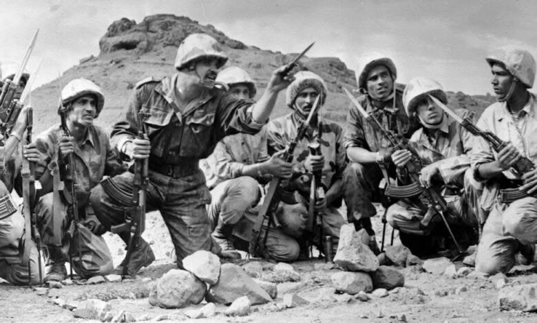 صورة لبداية الدعم العسكري لتعزيز سلطة الجمهوريين ضد القوات الامامية .. ففي 28 سبتمبر هبطت طائرات مصرية تحمل اوائل الجنود المصريين في تعز وصنعاء .