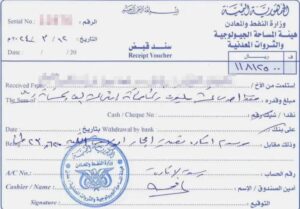 تغطية – سند قبض من وزارة النفط والمعادن هيئة المساحة الجيولوجية والثروات المعدنية – عدن