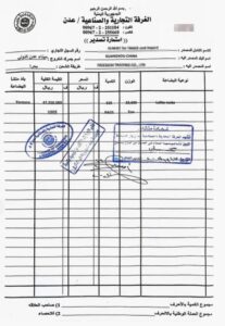 صوره لشهادة منشأ صادرة عن الغرفة التجارية الصناعية في عدن